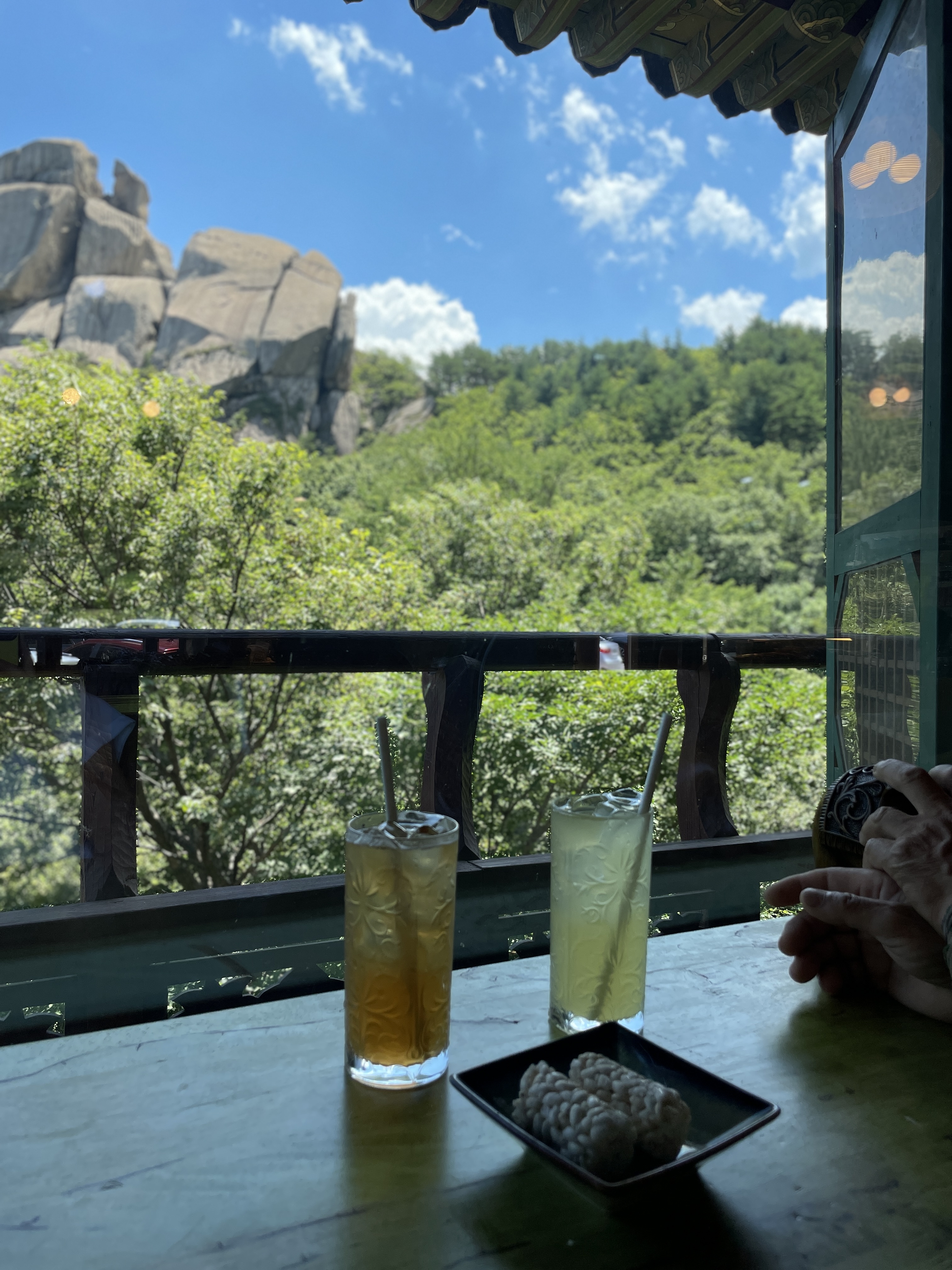전통찻집 자리도 너무 좋아서 창가에 자리를 잡았더니 수바위가 바로 보였어요.