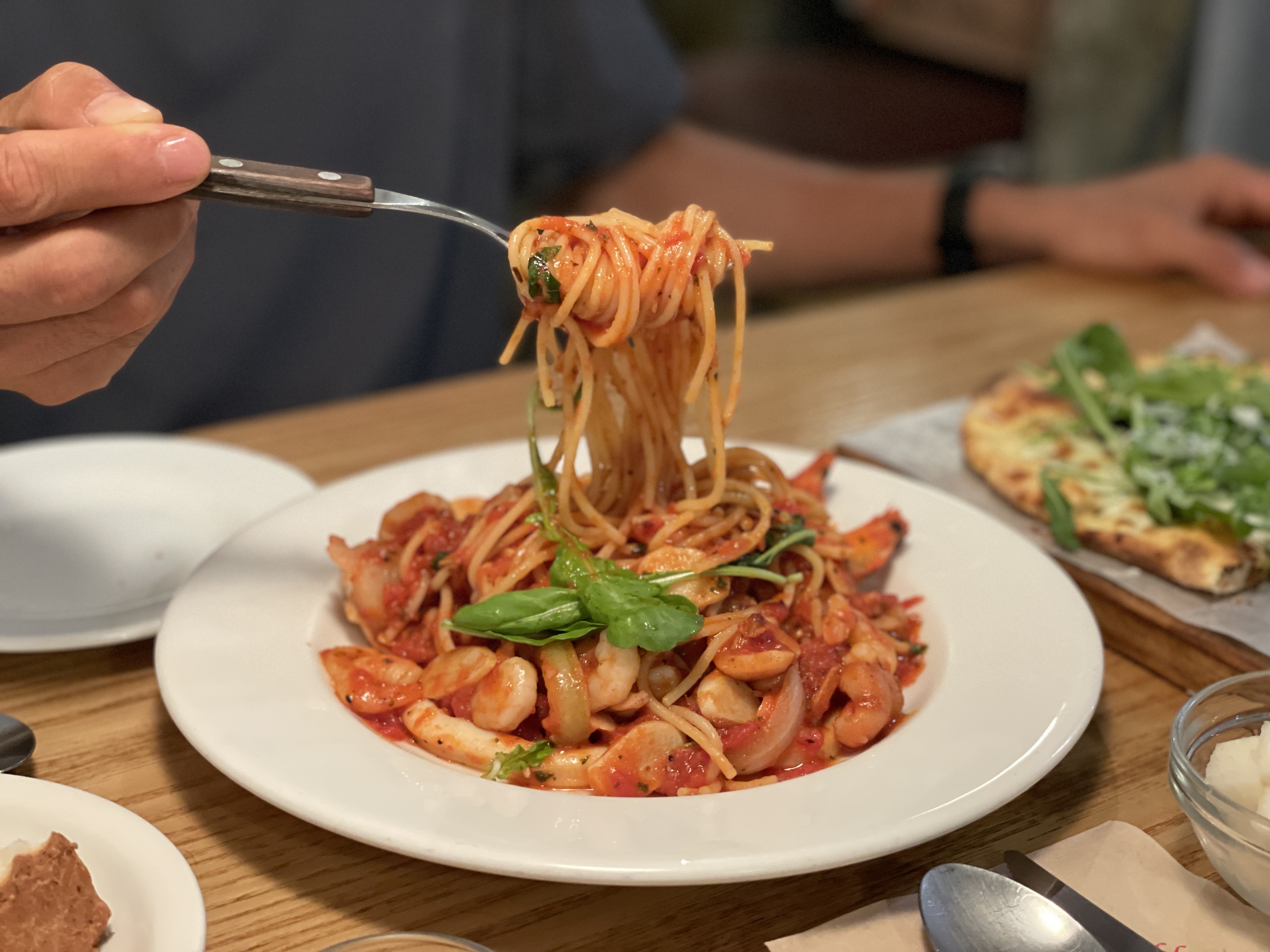 저희는 토마토 해산물 파스타와 바질페스토 피자를 주문했어요.