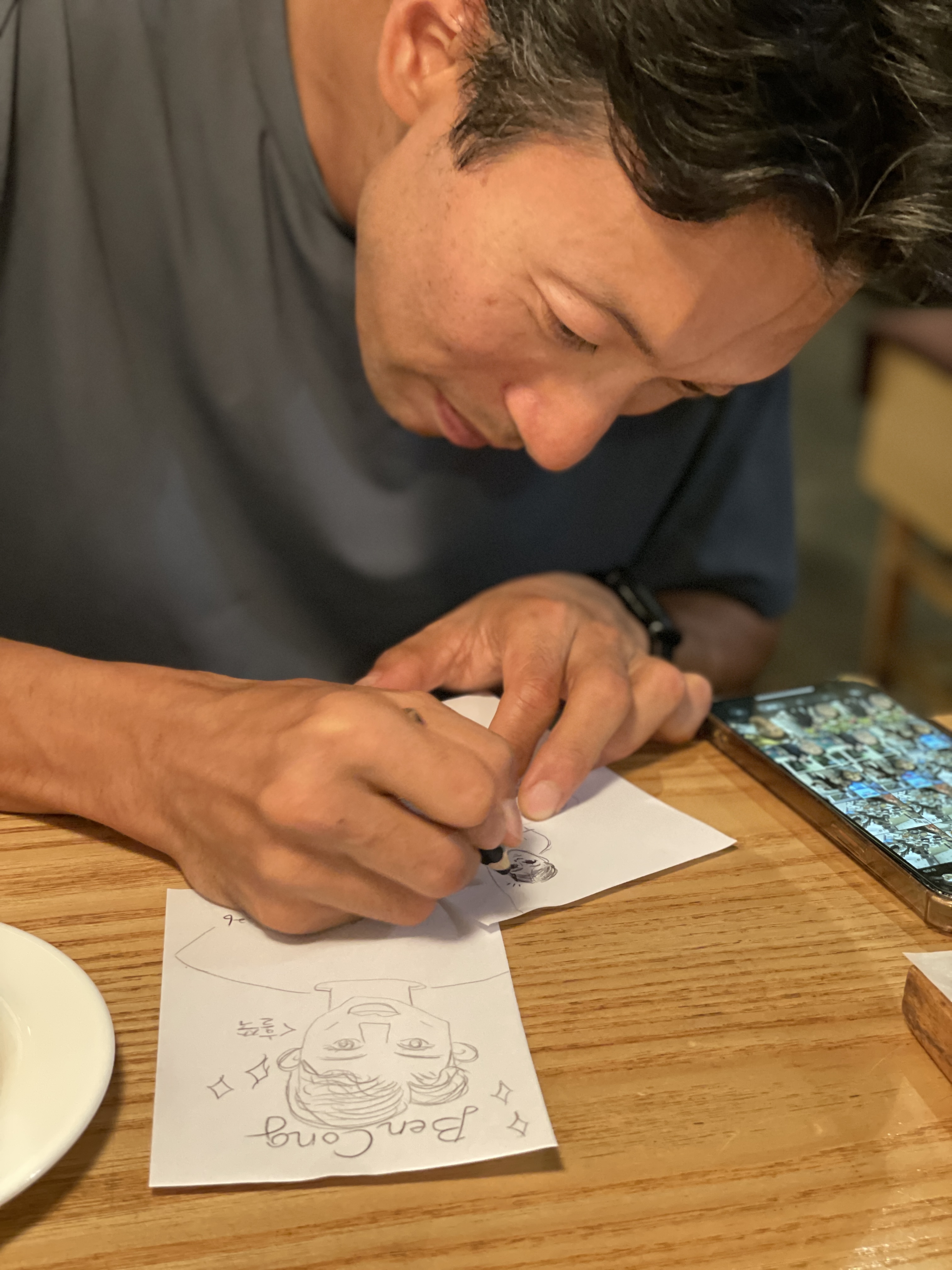 분위기 구경하며 저희도 종이에 그림을 끄적거려봤어요.