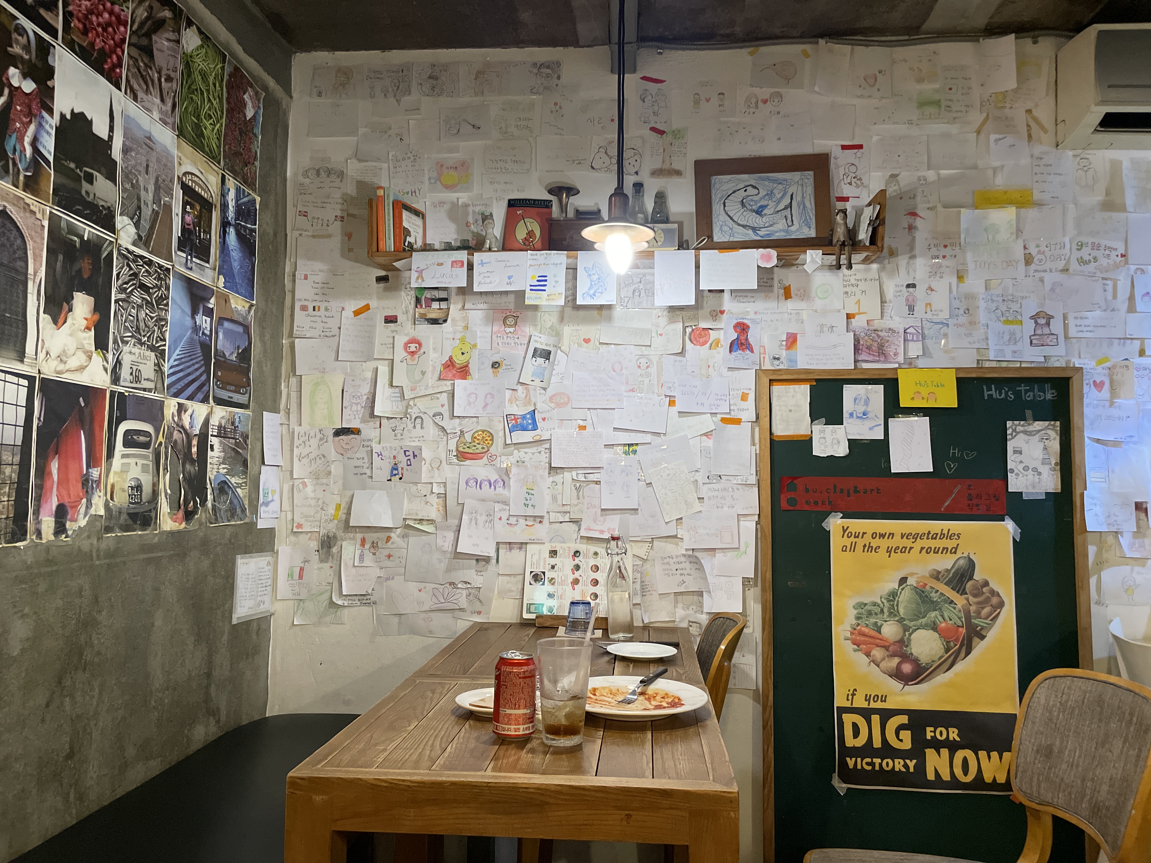 벽에는 낙서와 그림으로 가득했는데 메뉴를 기다리면서 그림을 그리거나 낙서를 하면 지루함도 덜고 좋을 것 같았어요.
