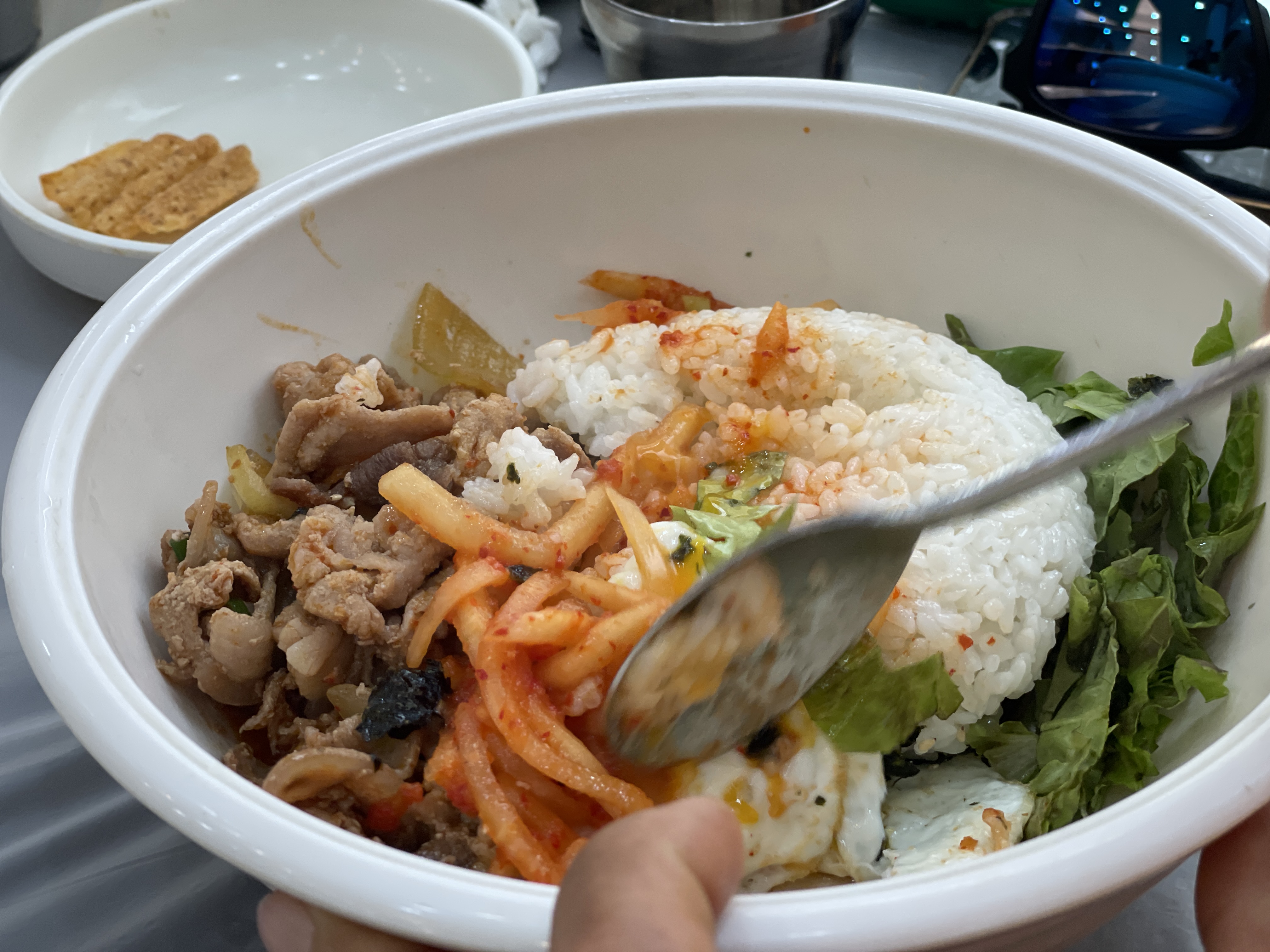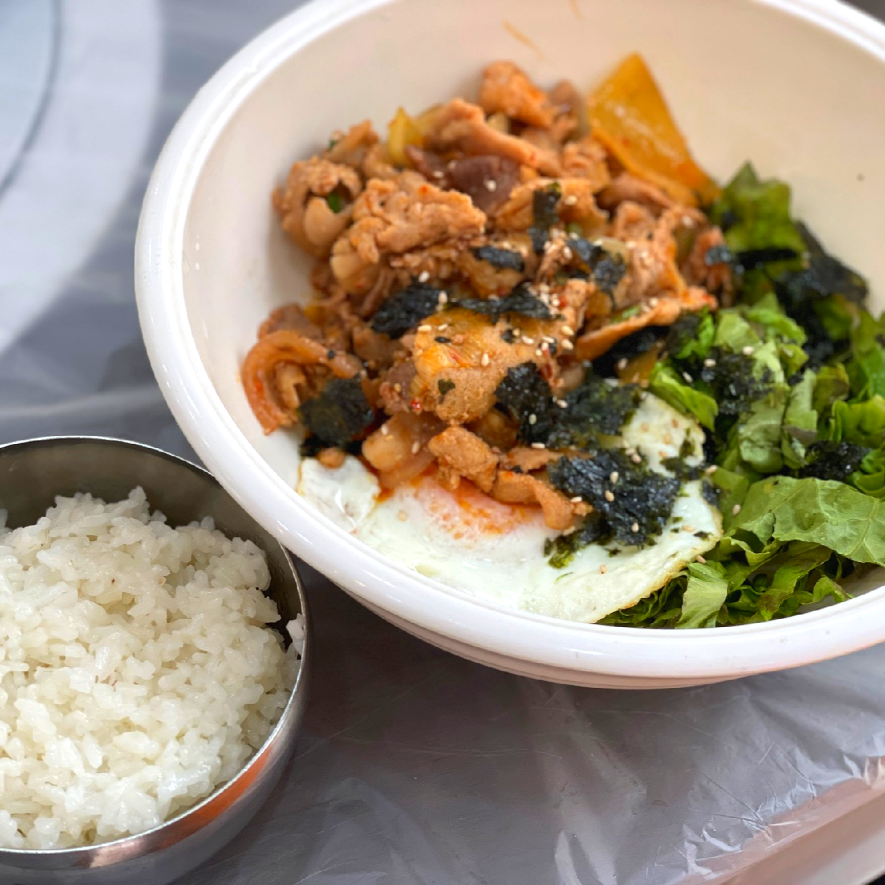 제육은 조금 덜 맵게 주문했는데 맛있는 계란후라이와 야채들이 들어가 있어서 정말 맛있었어요.