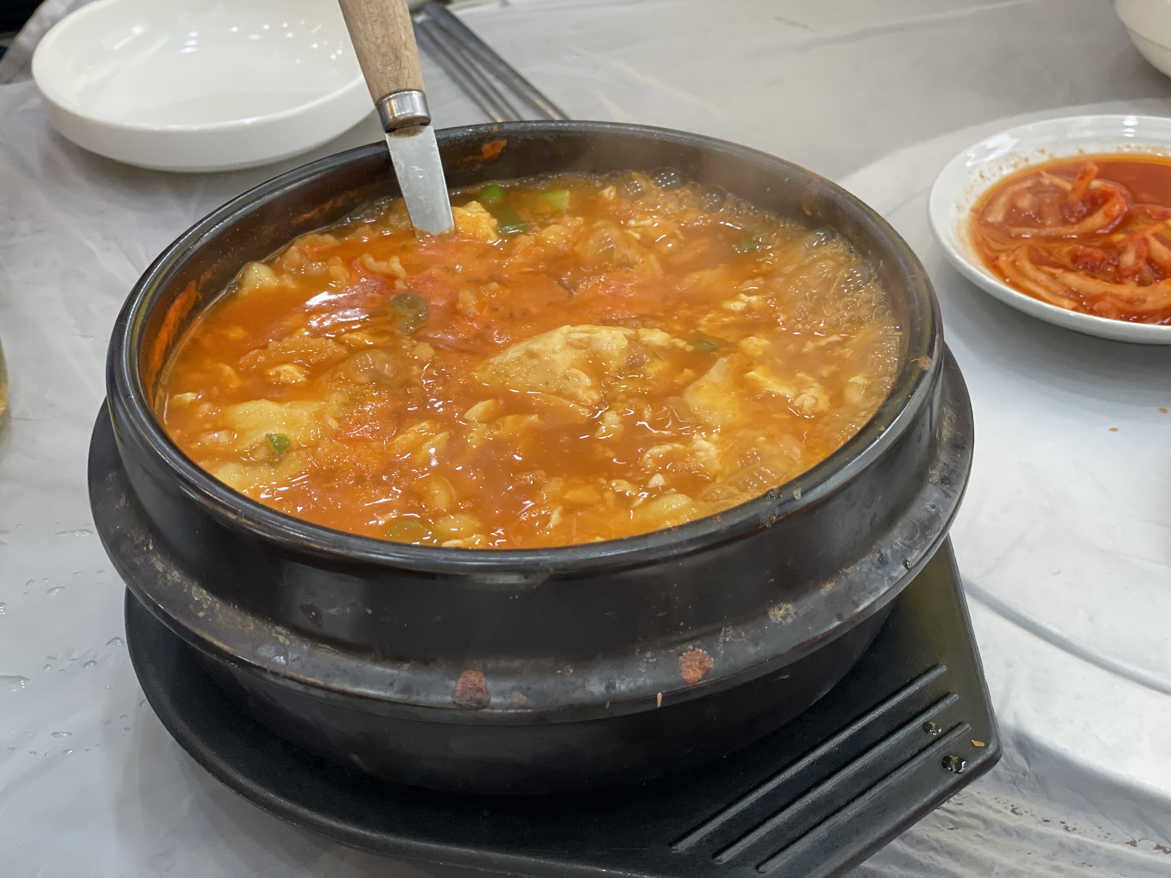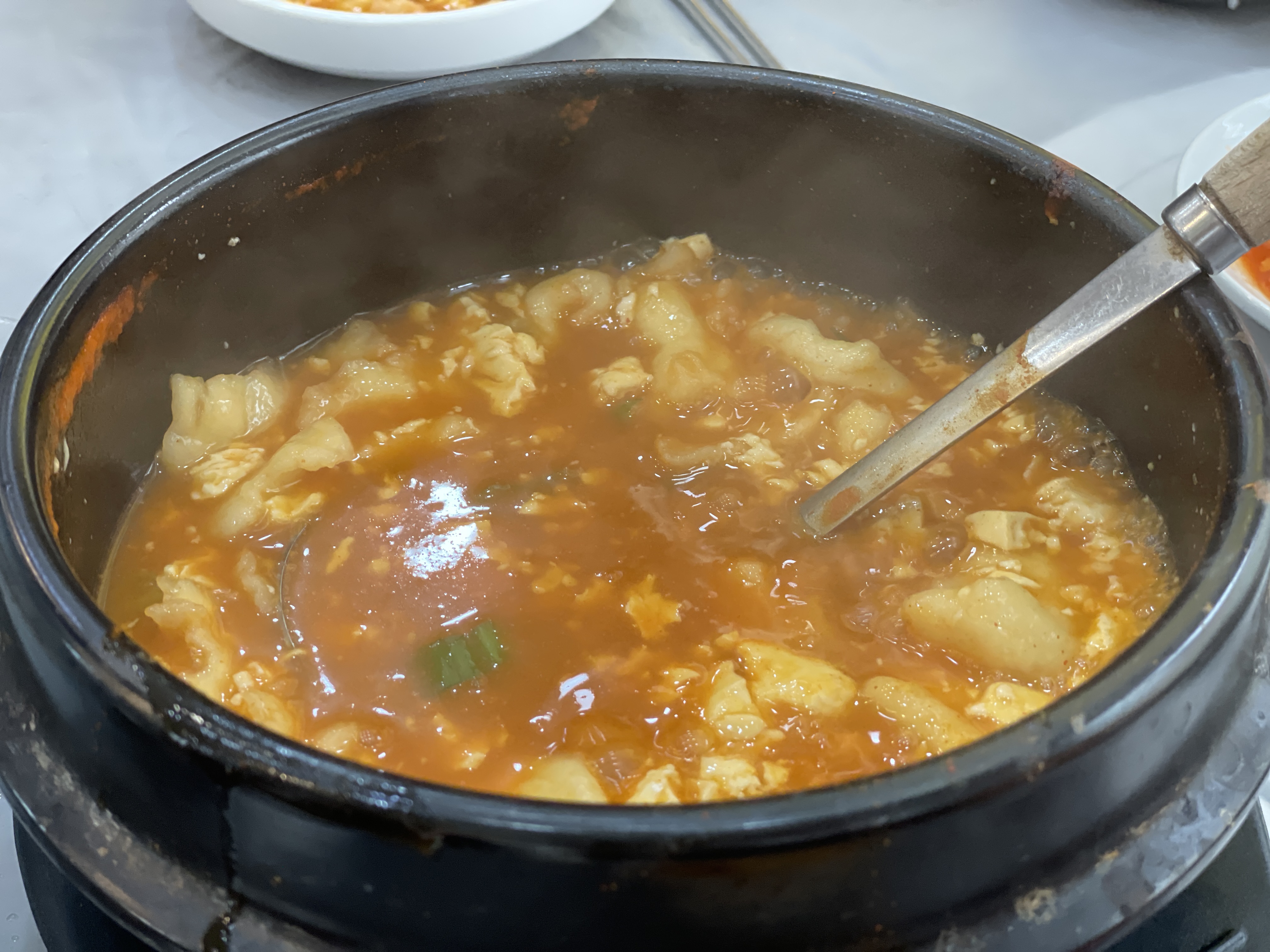 그리고 뜨끈한 뚝배기에 나온 순두부수제비!