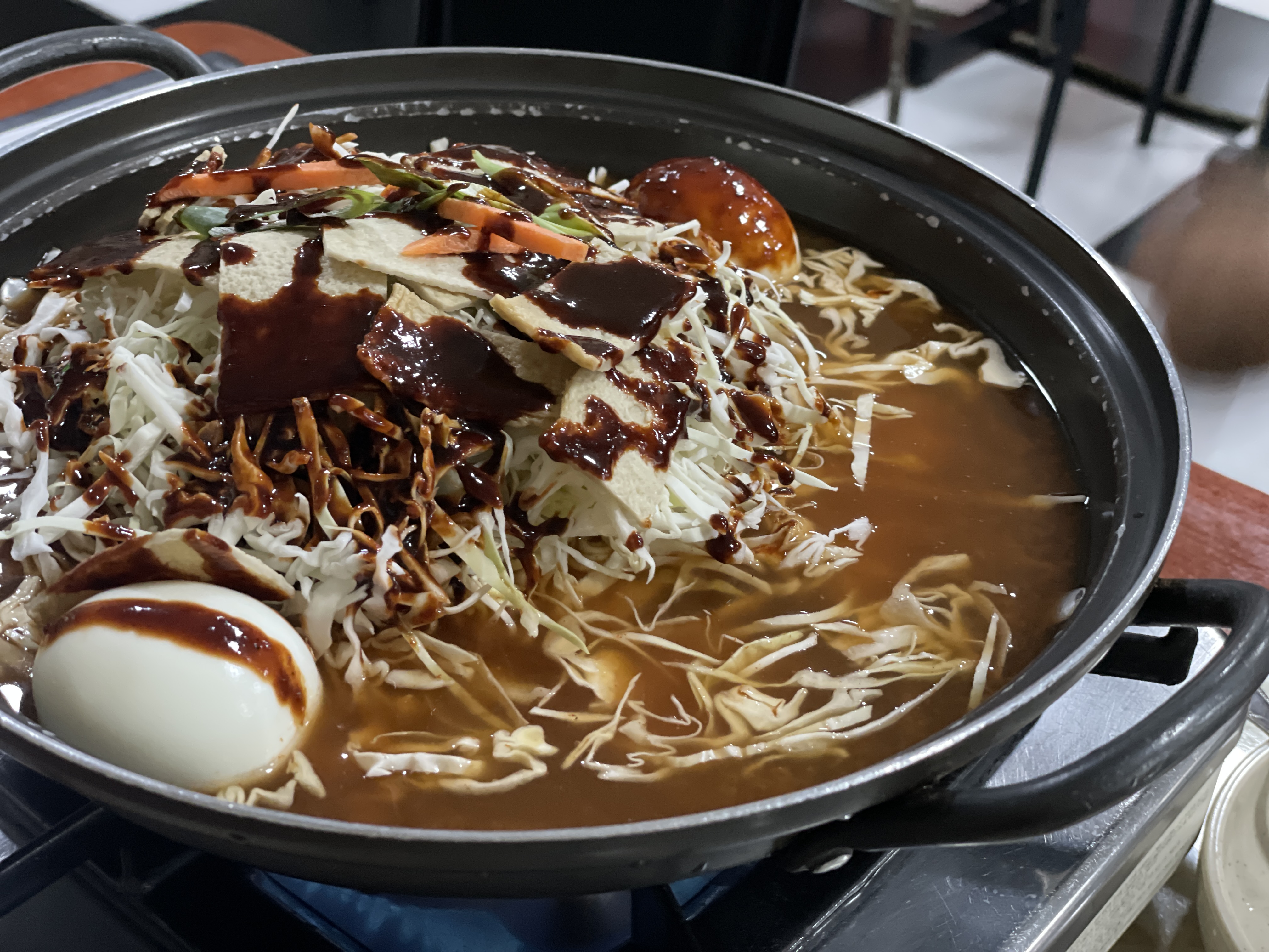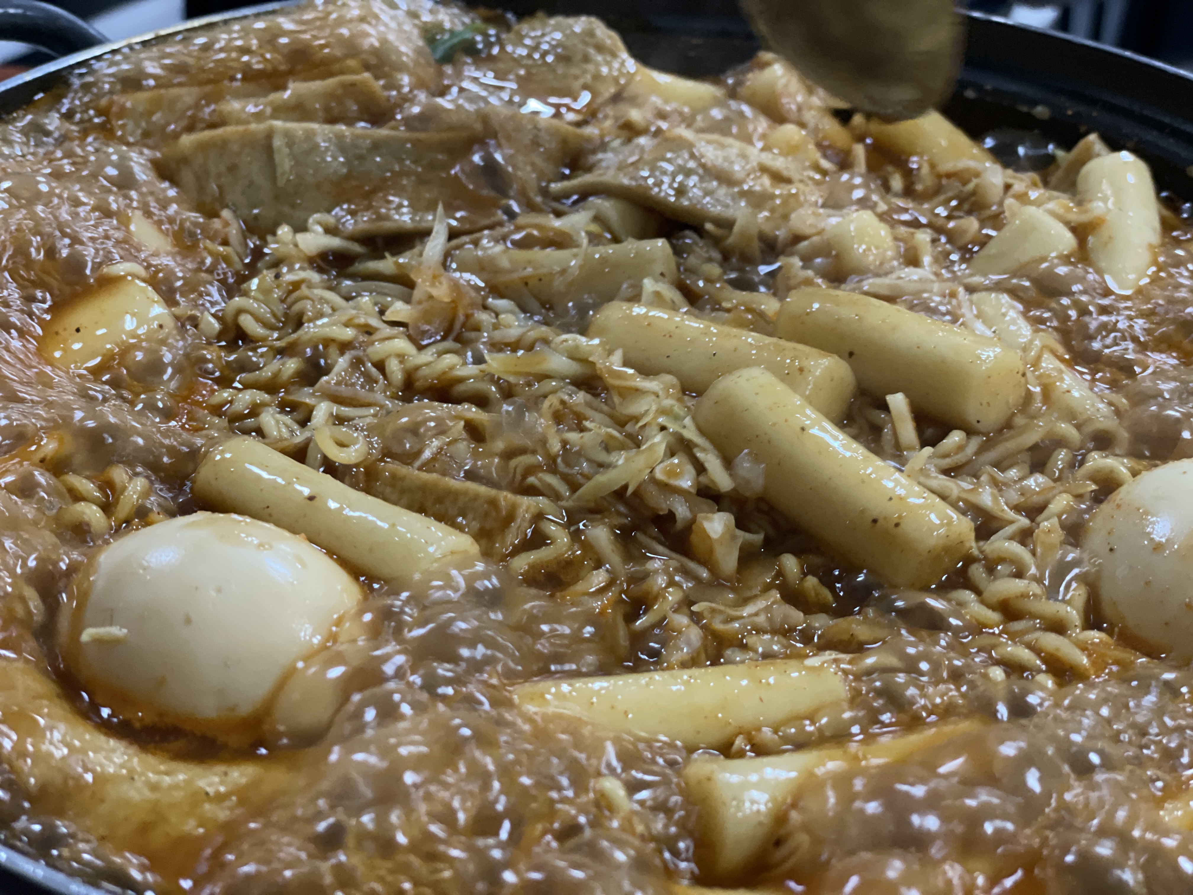 추가한 라면 사리가 익을때까지 보글보글 맛있게 끓여서 살짝 국물 맛을 보니 학창시절 먹었던 떡볶이 맛이 생각이 났어요.