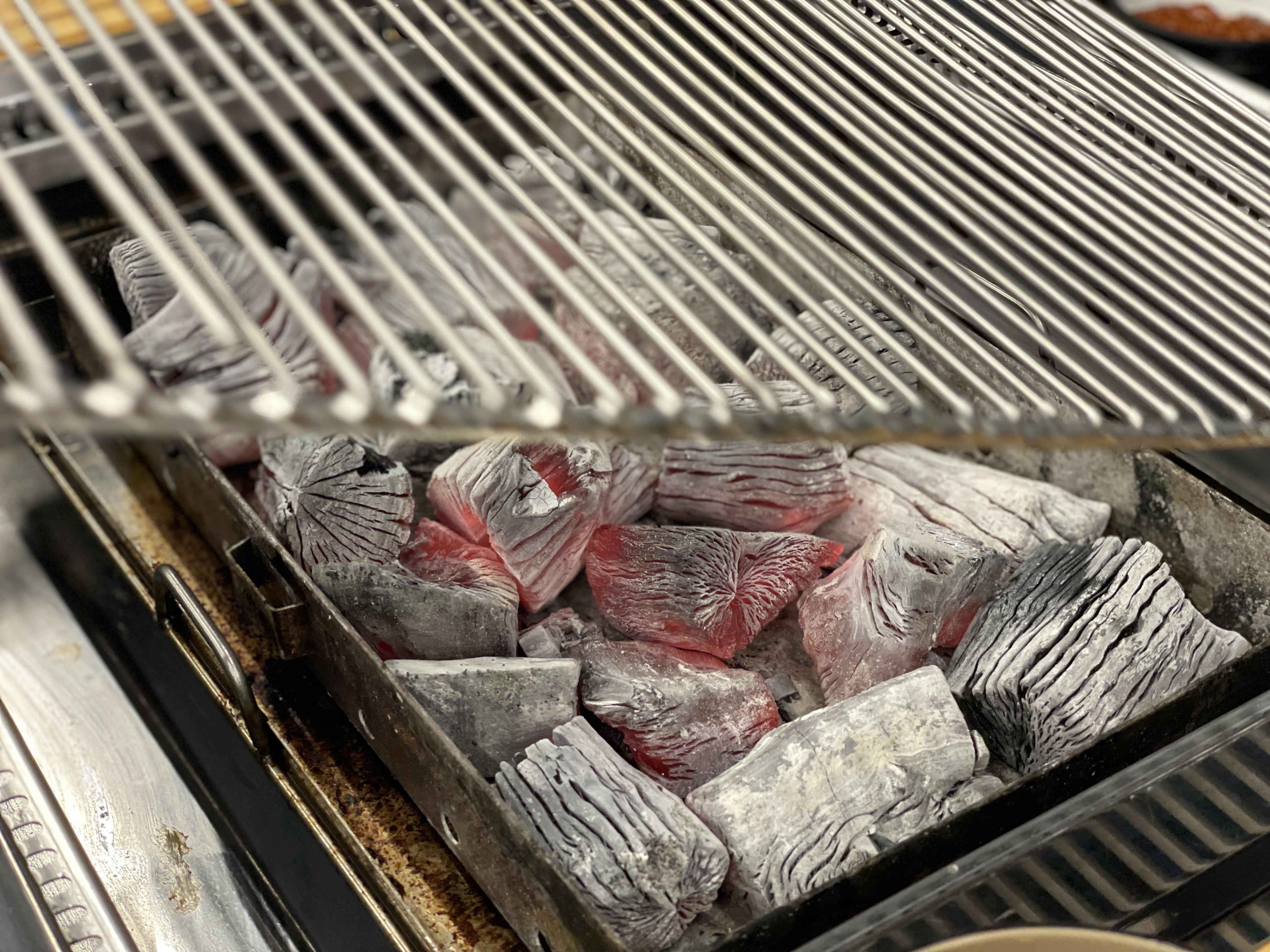 숯이 먼저 나오고 불판을 달궈 줍니다.