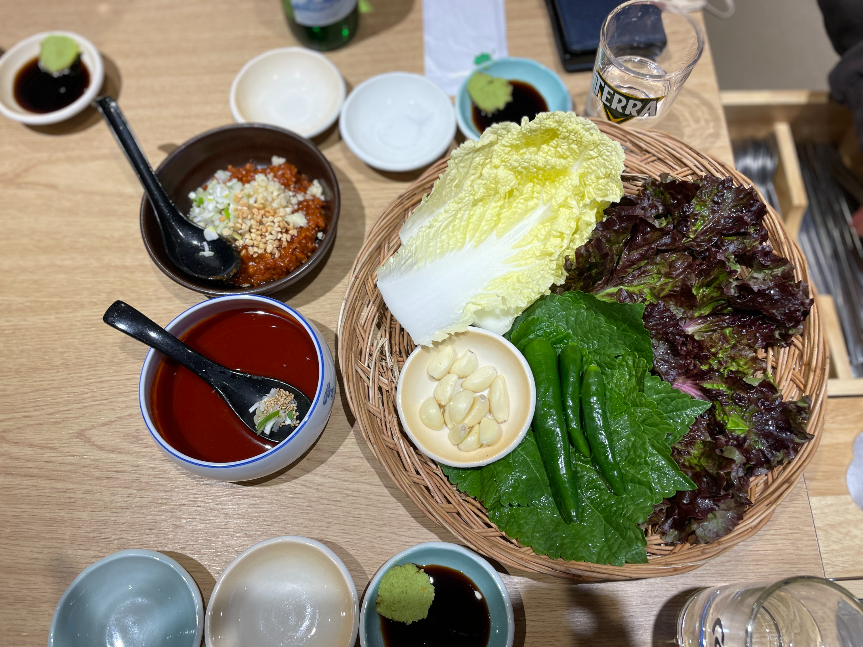 회를 주문하면 쌈야채들과 장을 이렇게 정갈하게 가져다 주세요.
