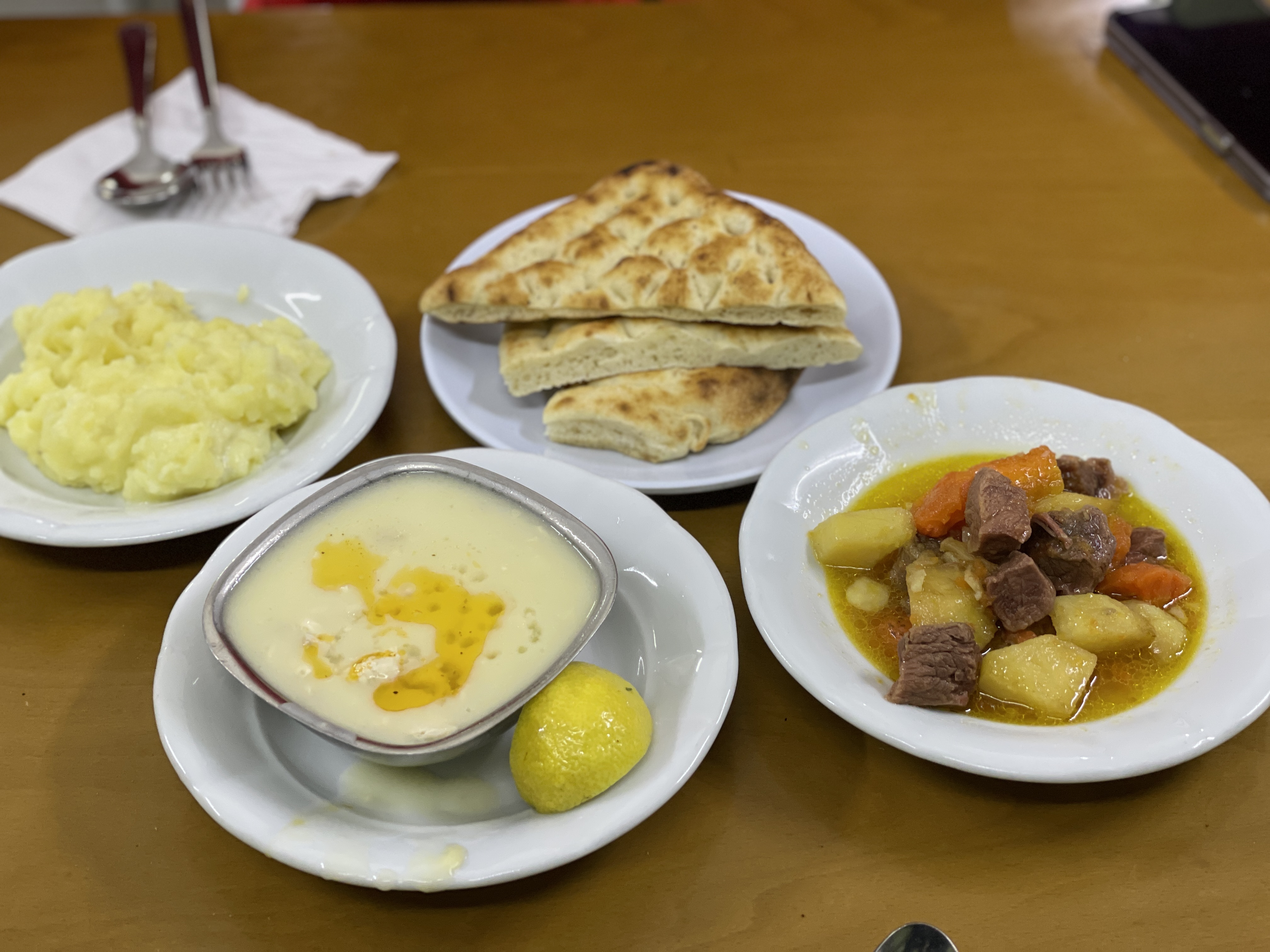 작년에 먹었던 치킨 스프 가 너무 맛있었던 기억이 나서 치킨스프와 소고기 스튜, 감자퓨레를 주문했다.