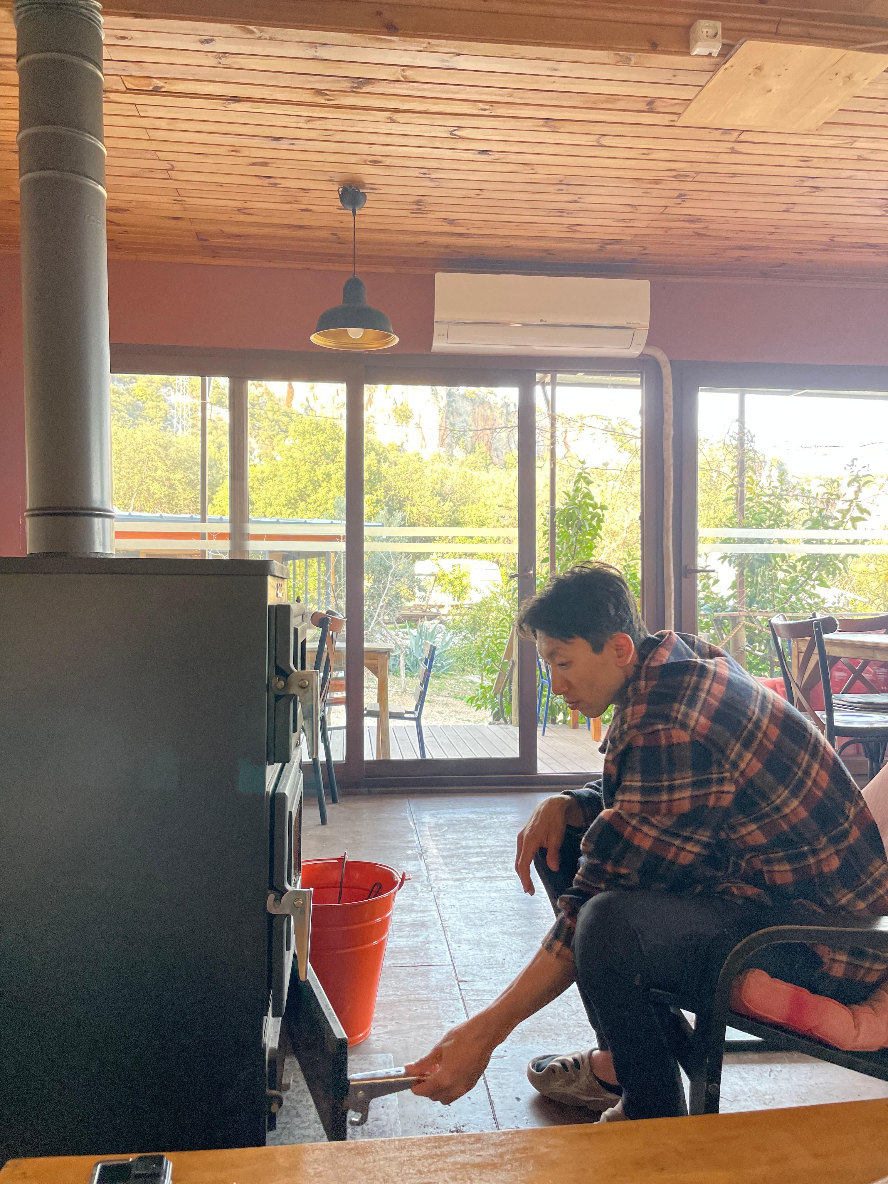 늦은 오후가 되자 오빠는 난로에 불을 붙이기 시작했다.