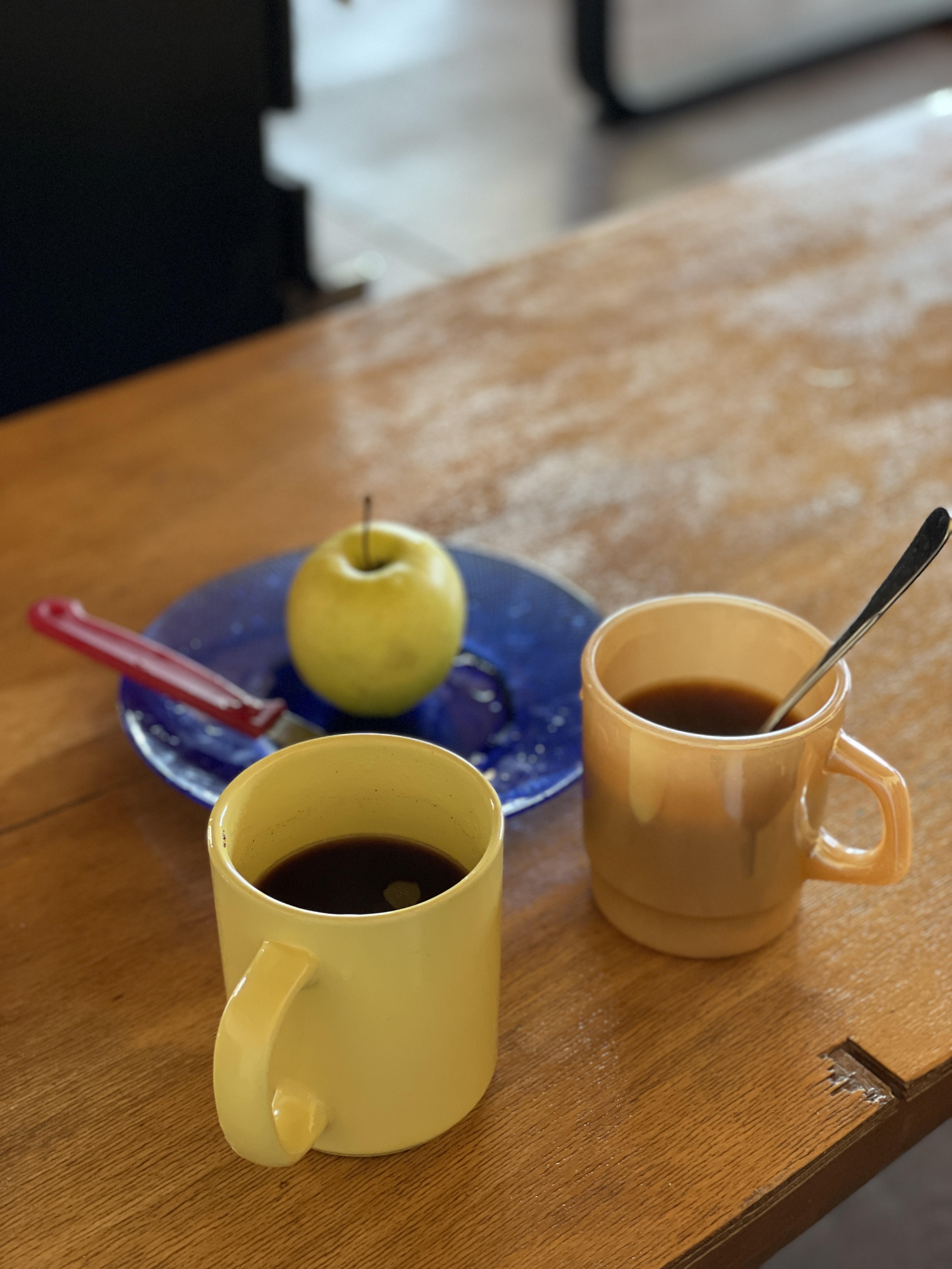 커피 한잔씩 타고 사과 하나 깎아먹으며 소파에 앉아 아주 푹 쉬었다.