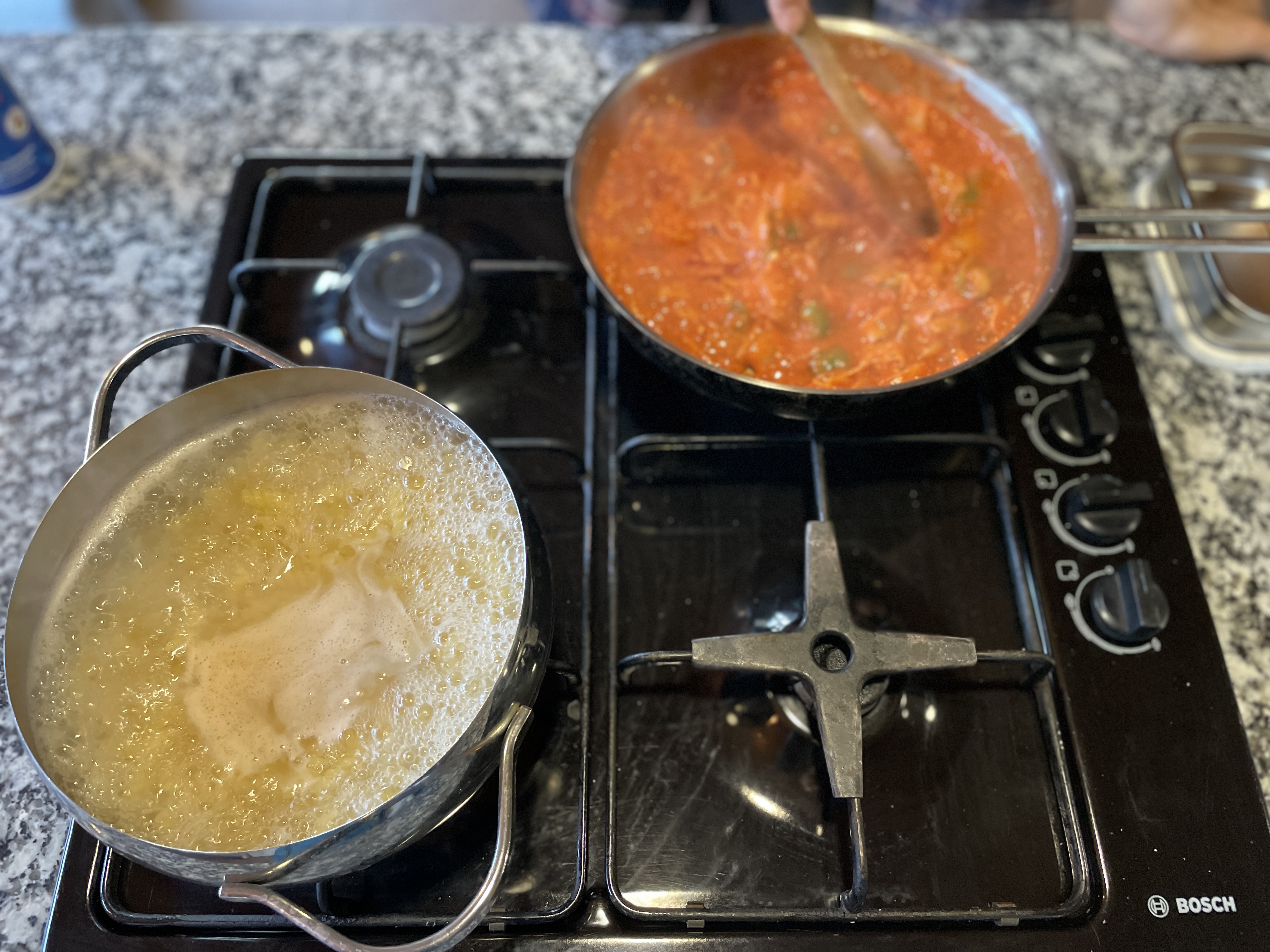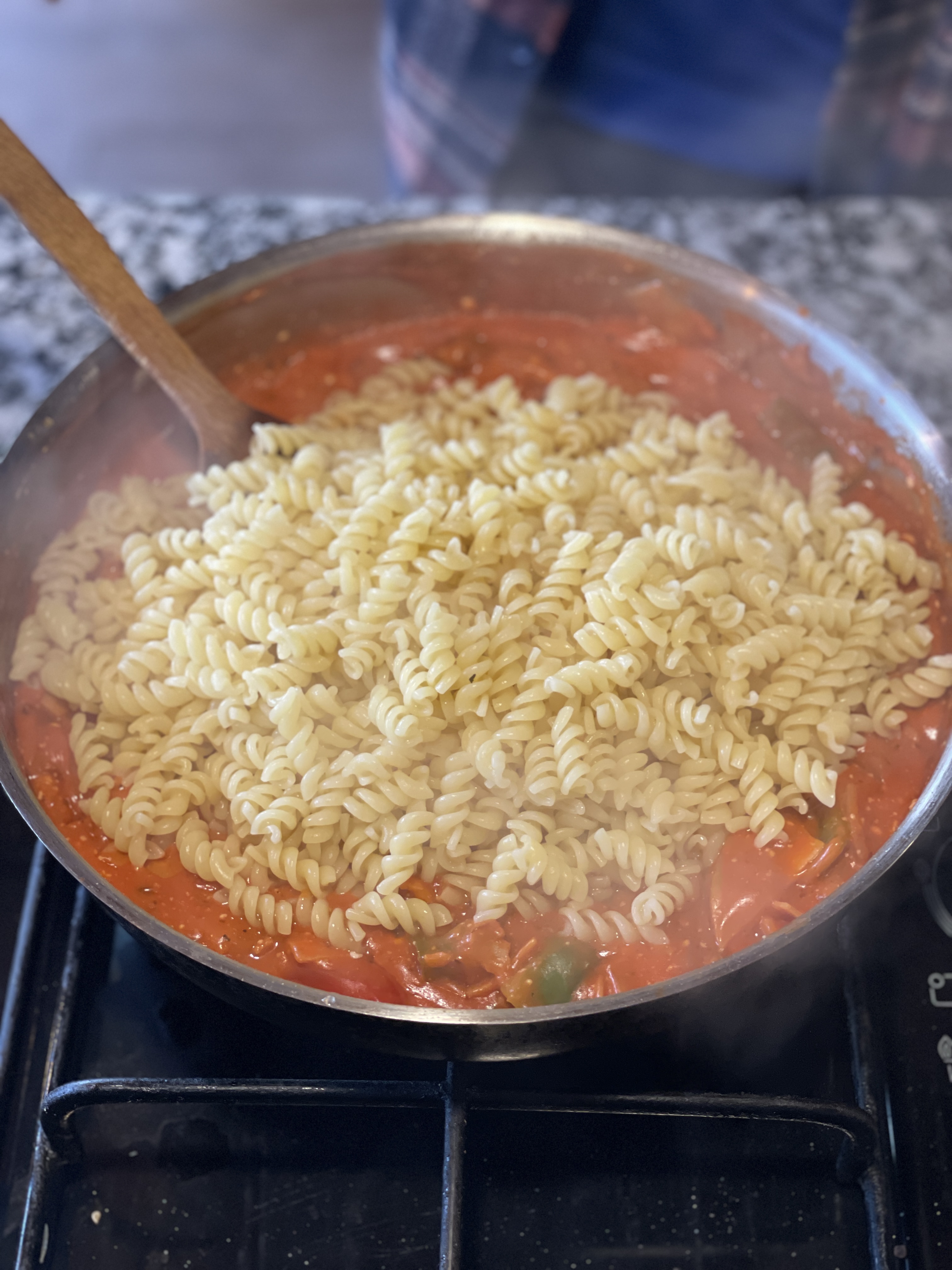 푸실리 면이 쫀득하고 너무 맛있었는데 넣을 재료가 없어서 야채와 샌드위치용 햄으로 오빠가 맛있게 만들었다.