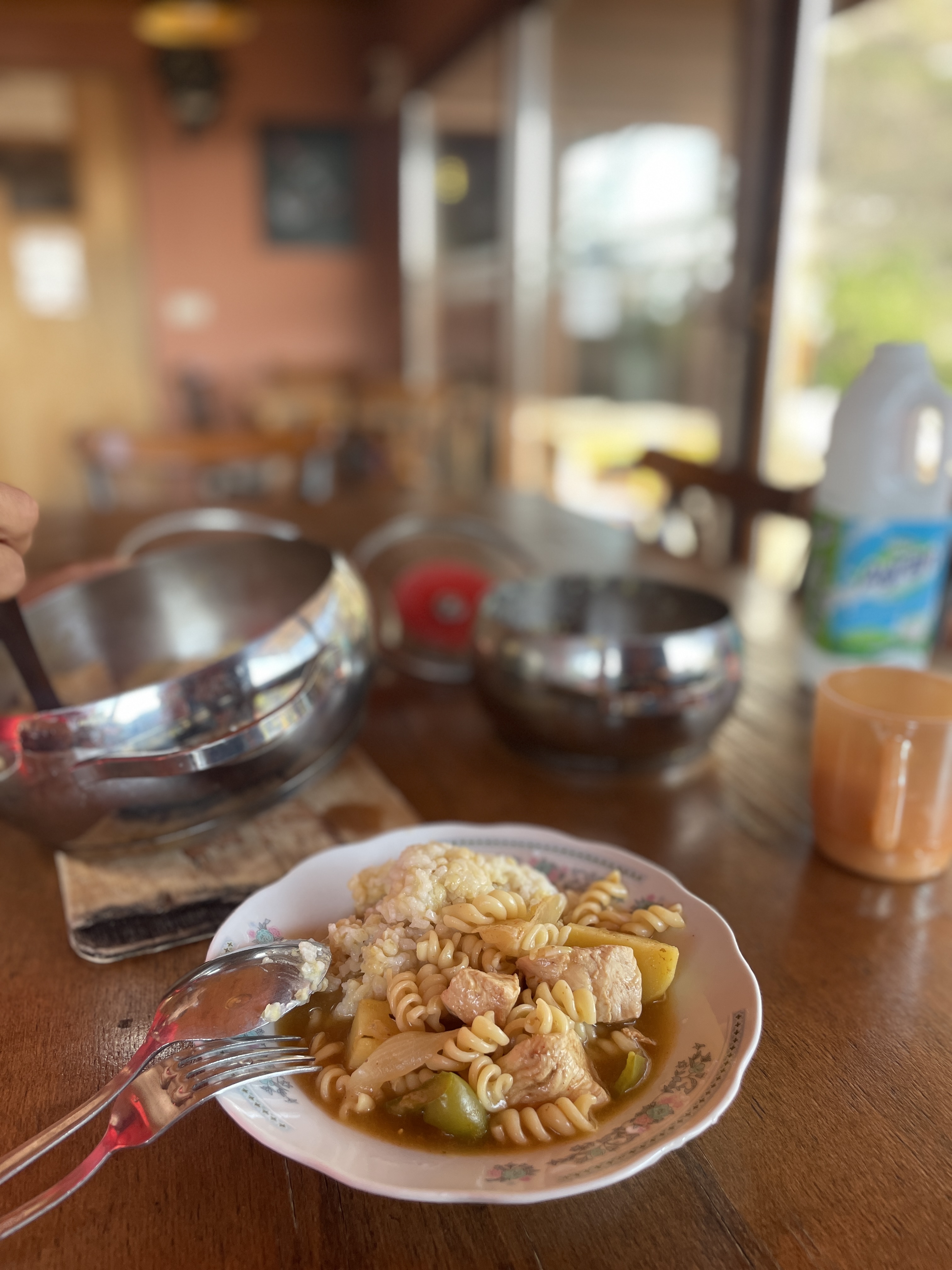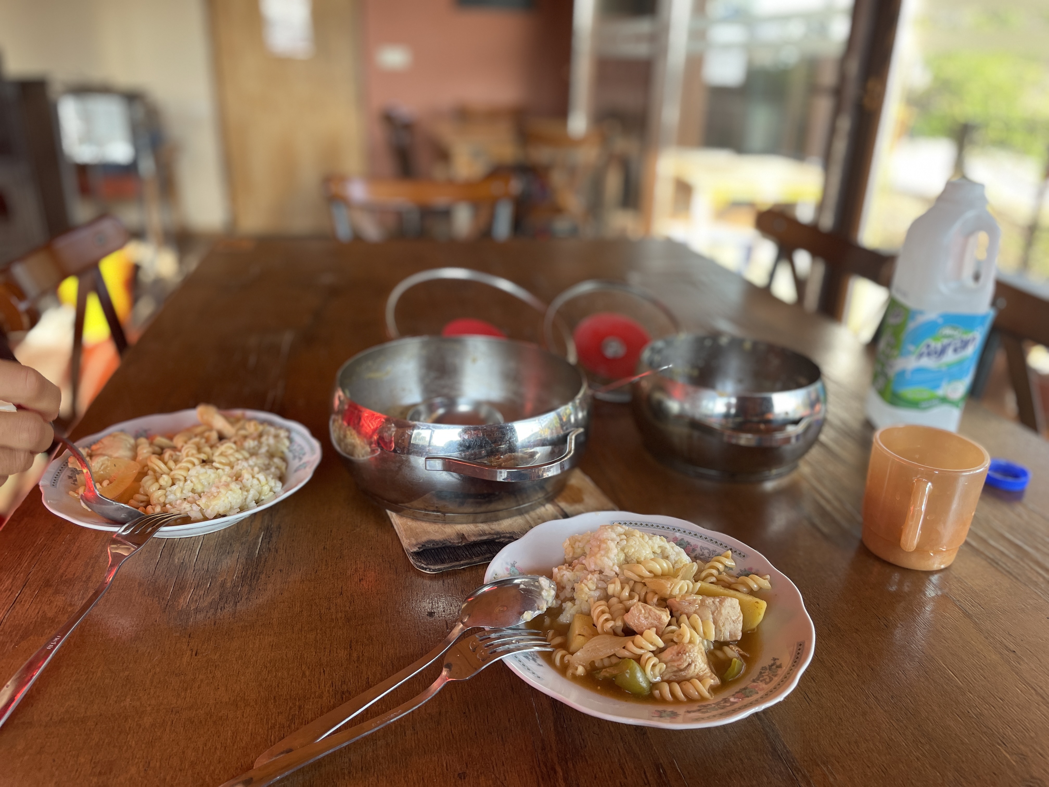 아침먹으러 식당으로 가서 어제 만들어 둔 닭볶음탕을 데워먹었다.