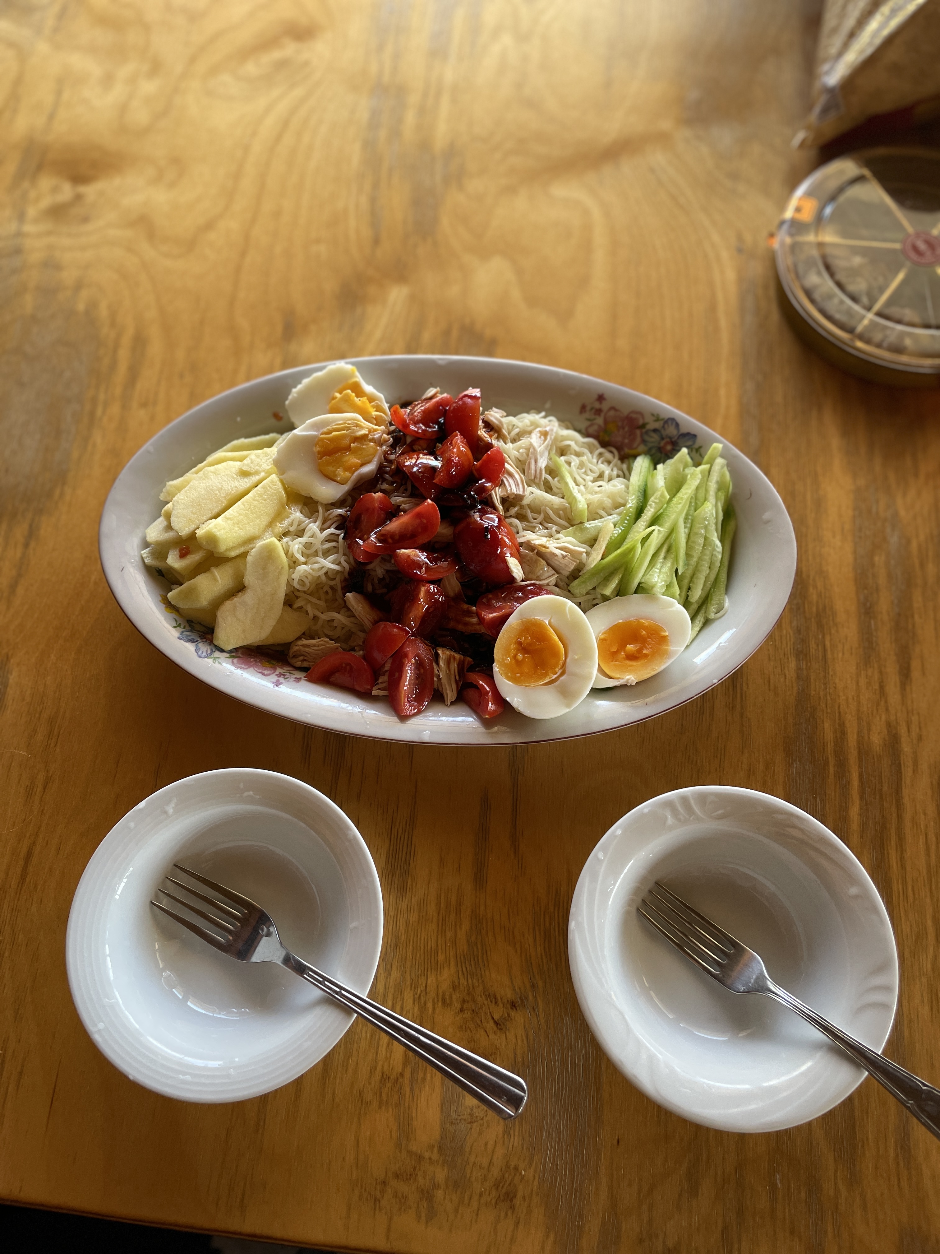 방울토마토, 사과, 오이 넣어서 비빔면을 맛있게 먹았다.