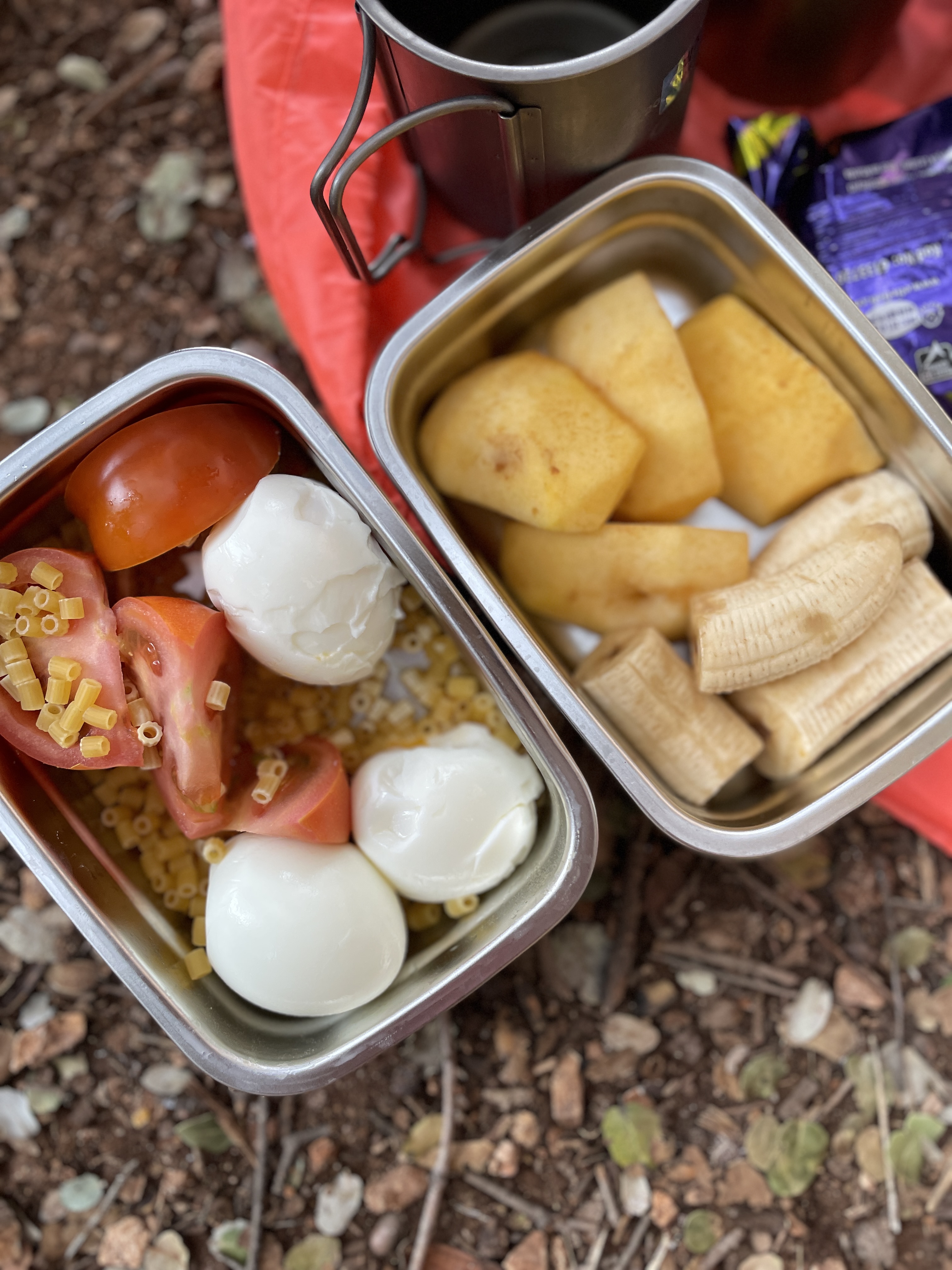 삶은 계란 3개, 토마토 반개까지 넣고 라면 하나 양이 부족할까봐 파스타 면까지 알뜰하게 챙겨서 가져와서 끓였다.