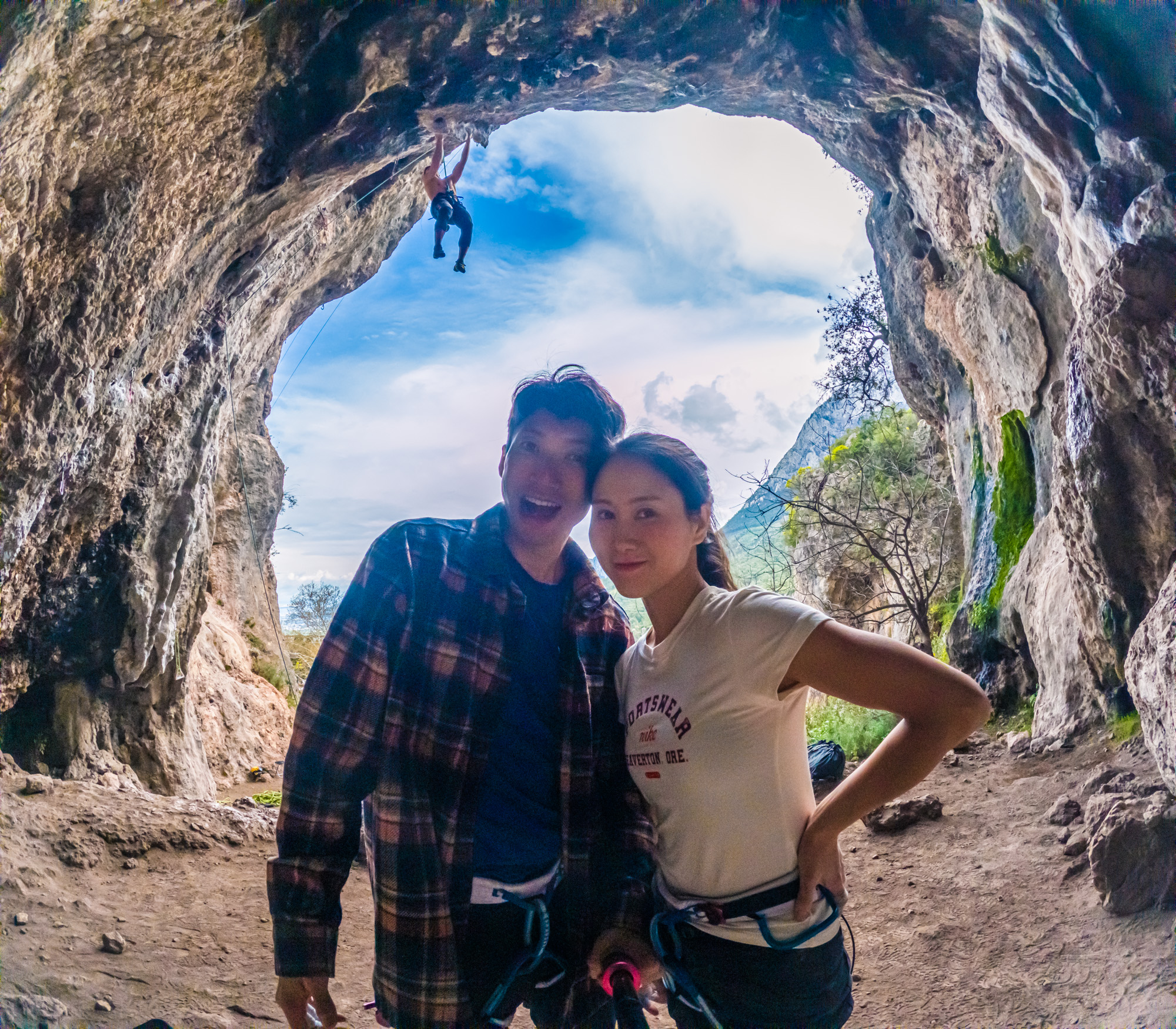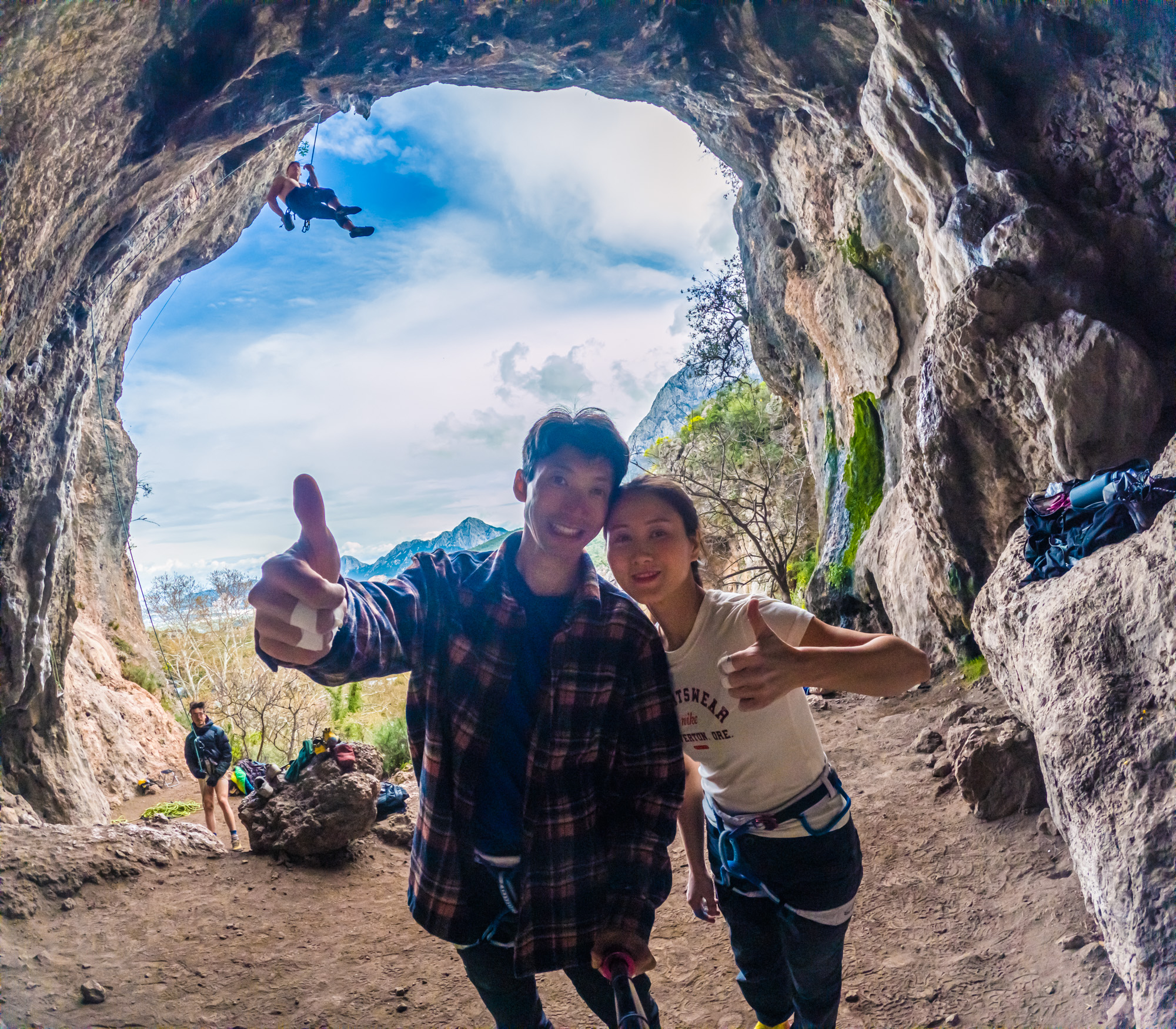 오늘 등반은 이렇게 마치고 동굴 안에서 사진을 찍었다.