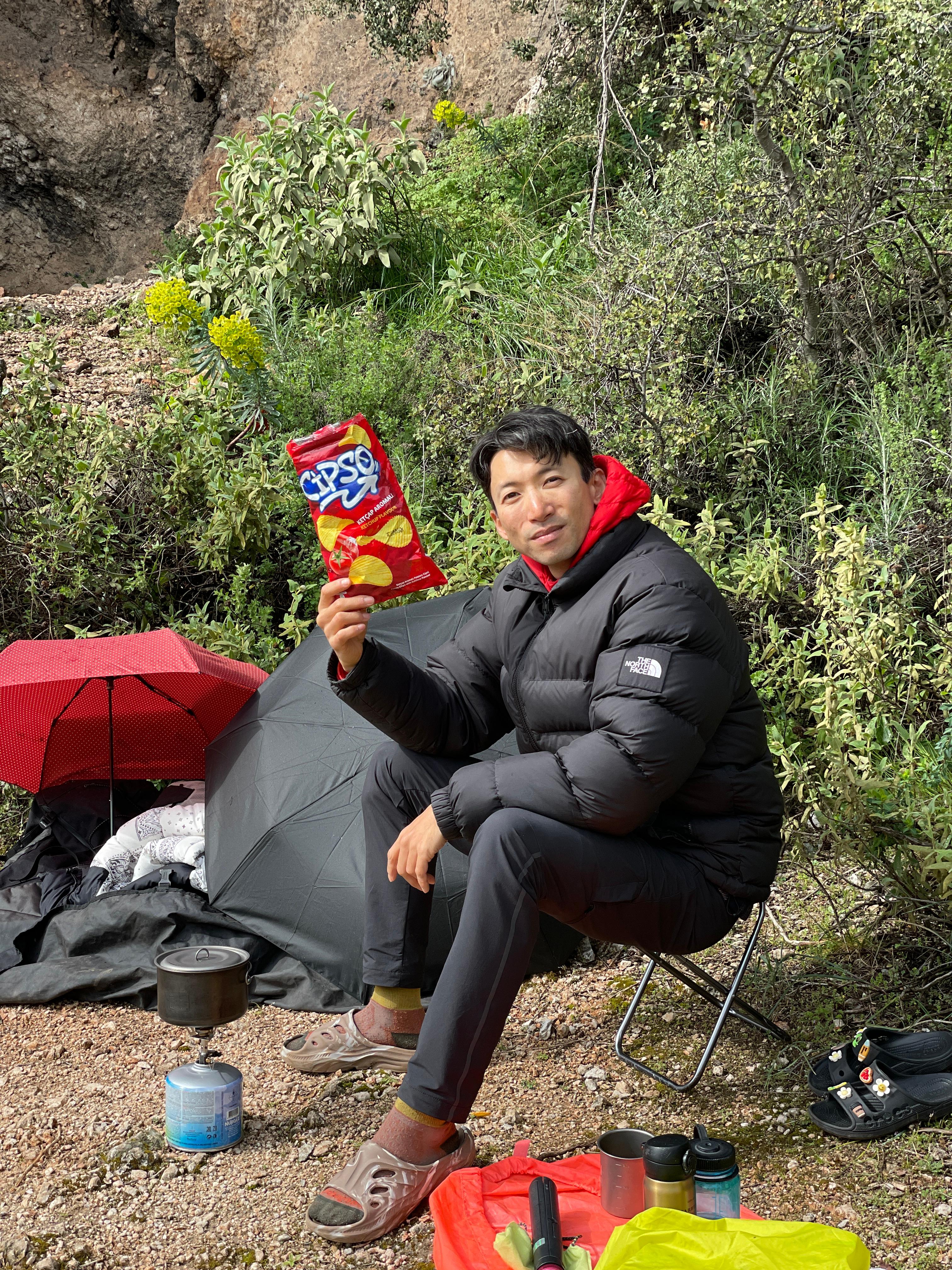 간식도 먹고 혹시 비가 또 떨어질까봐 우산으로 짐을 막아두고 첫 등반을 시작했다.