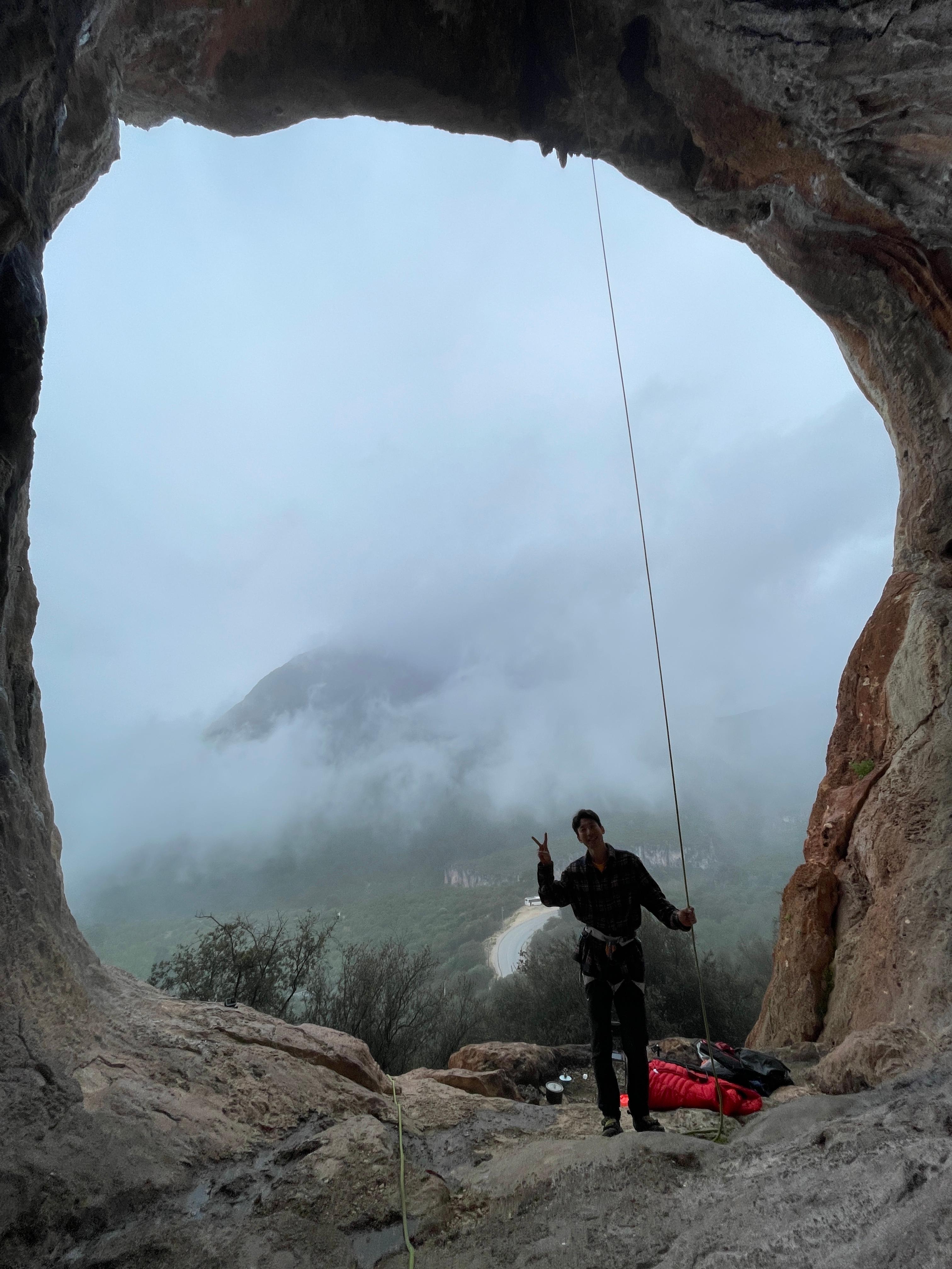 두 팀이 더 등반하고 있었는데, 다행히 동굴 안으로 비가 들이치지는 않는 것 같아 여기에 자리를 잡았다.