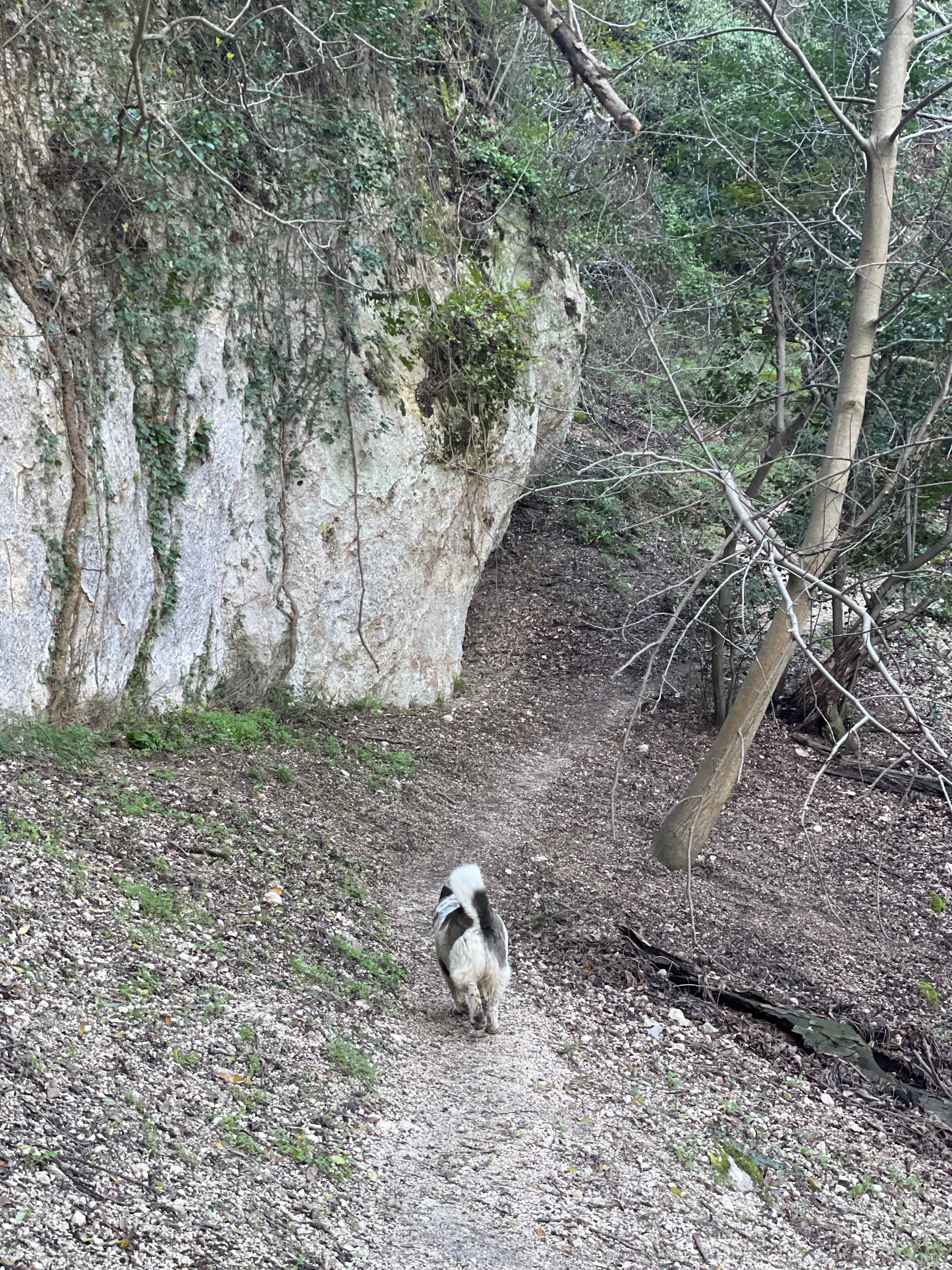 캠프에서 나가는데 이 집 강아지 괴프테가 우릴 따라오기 시작했다.